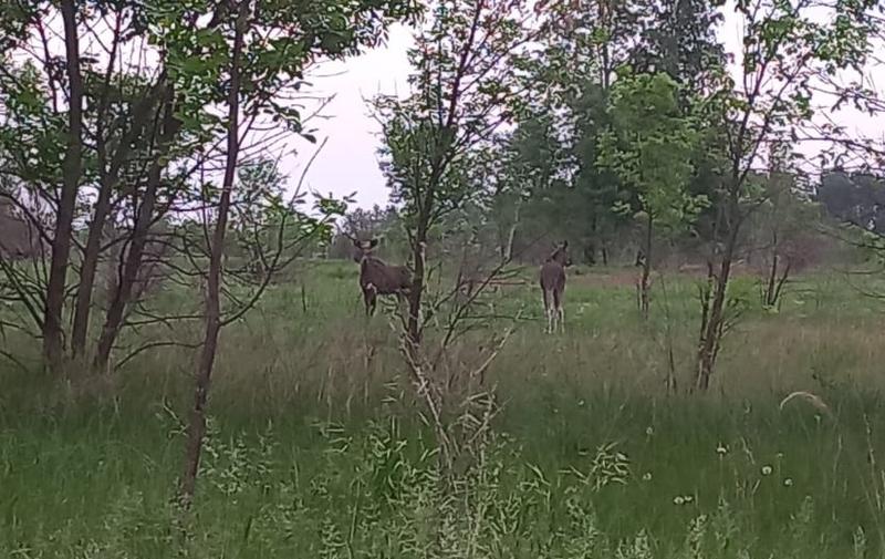 сопровождала пара лосят-подростков. Обе «стороны встречи» вдоволь