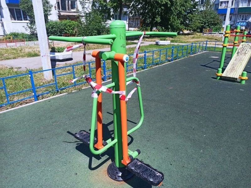 Что до изувеченных МАФов, то подвесы качелей были демонтированы в связи с их неисправностью в результате вандальных действий. Эксплуатация качелей приостановлена до определения решения суда. Также ограничен доступ на горку-трубу винтовую и уличные тренажеры.