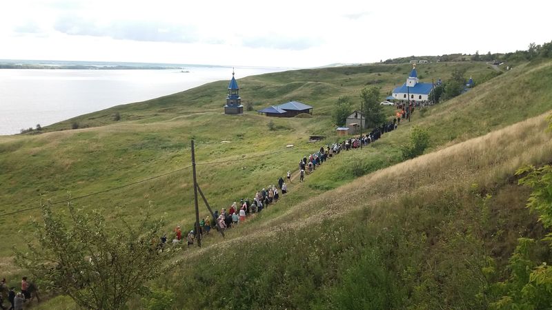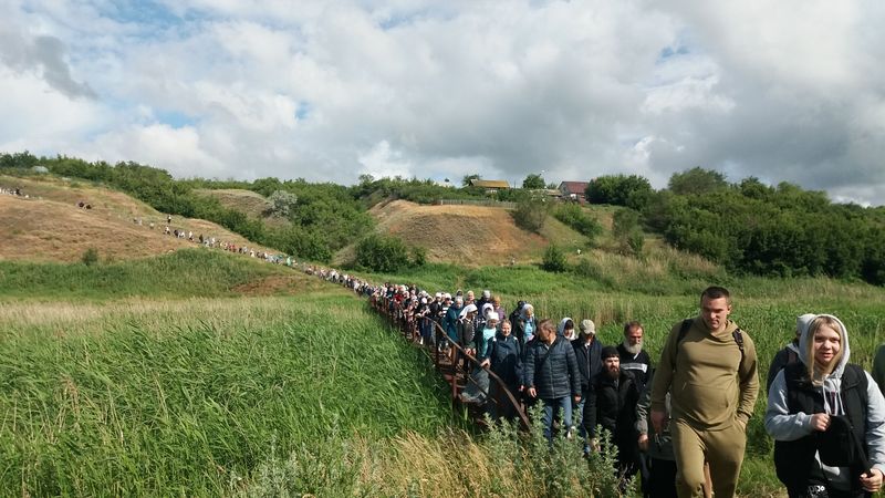 Несколько дней назад в Сызрани прошел масштабный крестный ход - по оценкам, в нем приняло участие порядка 700 человек. Шли паломники от Казанского кафедрального собора до святого источника в поселке Новокашпирский. Шли шесть часов, было пройдено 18 километров. Ранее считалось, что путь от собора до источника, по которому шли участники крестного хода, составляет 15 км, но уже в прошлом году многие заметили, что расстояние немного длиннее. Проверили - и действительно, путь составляет 18 км. Большая его часть проходит по асфальтированной дороге, но последние километры приходятся на пересеченную местность, с не везде твердой почвой - и трава, и песок, и бездорожье, где приходилось в гору то подниматься, то спускаться. А еще был металлический мост через речку... Но дошли. И в конце пути и плакали, и смеялись от радости. Не оттого, что дошли. Оттого, что сподобил Господь удостоиться этого счастья - стать участником крестного хода.