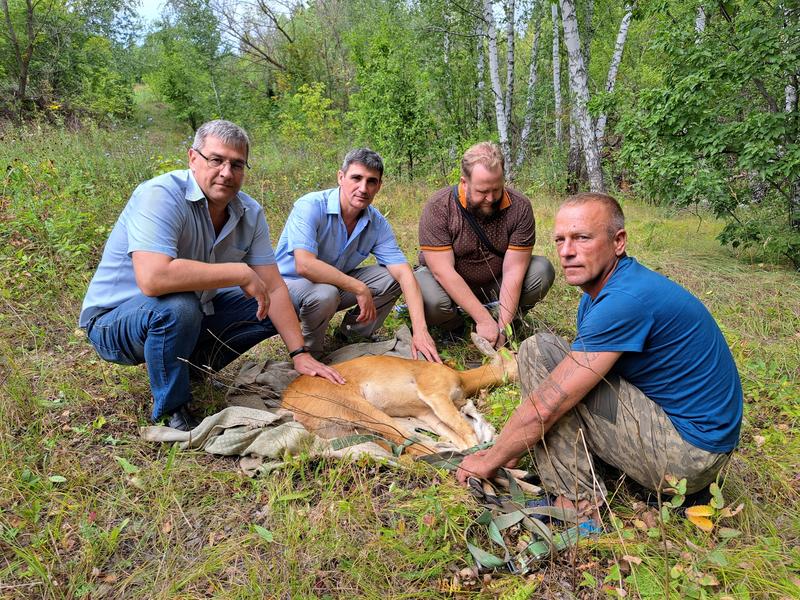 Подоспевшие через несколько минут егеря пришли на помощь и помогли стреножить животное, напоить его водой и немного успокоить.
