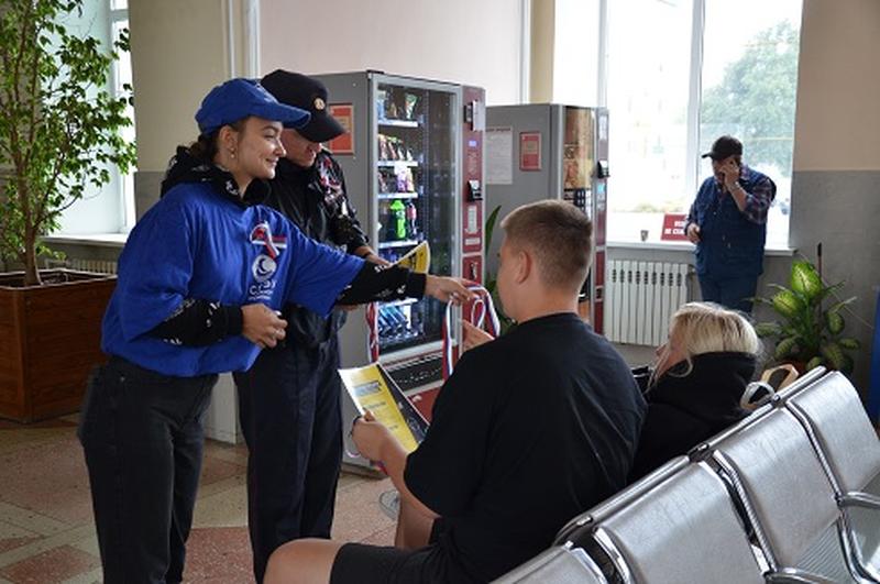 На сызранском вокзале пассажиры получали подарки и делали фото на память с полицией: поводом поднять людям настроение и поделиться полезной информацией стал День флага Российской Федерации. 22 августа, сотрудники транспортной полиции вместе с общественниками провели на вокзале станции Сызрань-1 патриотическую акцию «Триколор». Утром на третьей платформе было многолюдно, пассажиры ожидали прибытие электропоезда сообщением «Сызрань - Самара». Поздравить жителей и гостей города с праздником пришли на перрон председатель Общественного совета совместно с волонтерами Сызранского филиала Самарского государственного экономического университета.