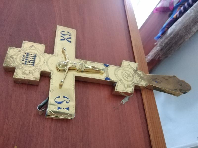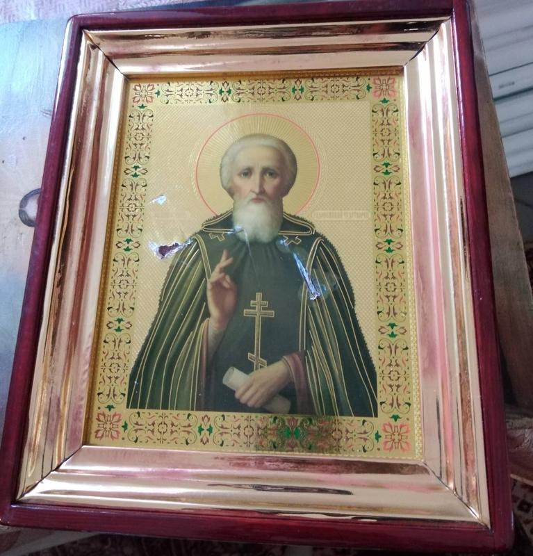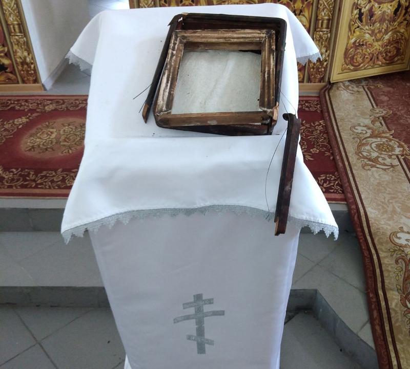 отремонтировал, как смог, разбитые образа святых - но сами иконы решено