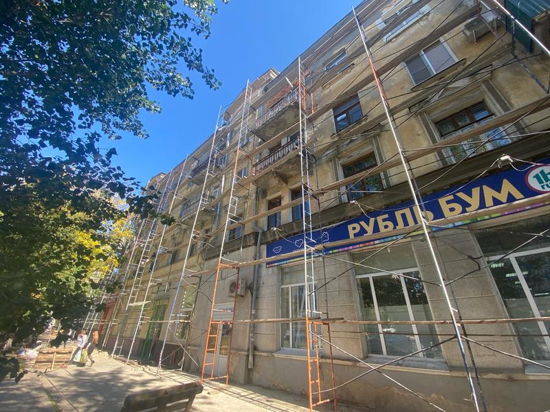 Самый страшный, изуродованный временем дом №8 на улице Московской, обретает новый вид. Дом введённый в эксплуатацию в 1954 году, уже совсем скоро отпразднует 70-летие. И вот каким его увидят жильцы 26 квартир. Фасад дома выкрашивают в приятный светло-желтый цвет, контрастирующий с коричневой окраской первого этажа: особенно хорошо дом уже смотрится со стороны двора. Но, что еще важнее - судя по внешнему виду дома, строители укрепили балконы. До ремонта некоторые балконные плиты были в явно аварийном состоянии, и грозили по кускам обрушиться на головы прохожих. Теперь же можно проходить мимо дома, не посматривая в испуге вверх.