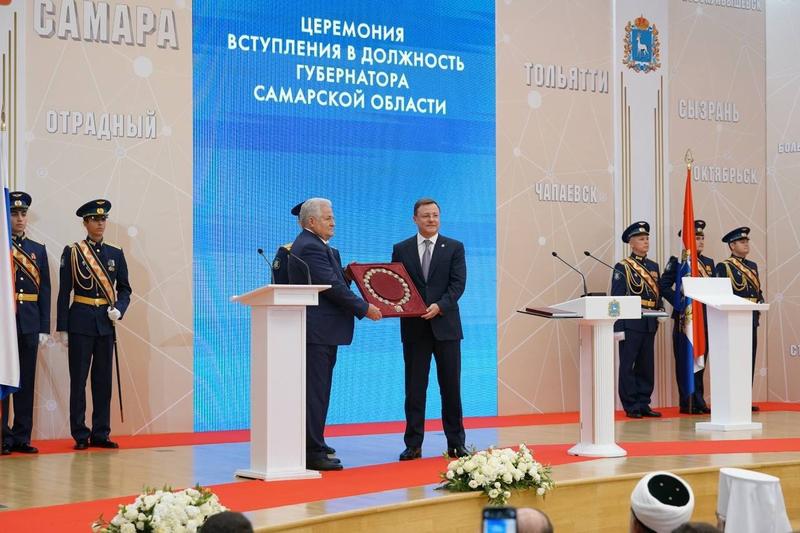 В эти минуты проходит торжественное вступление в должность губернатора Самарской области Дмитрия Азарова. Трансляция проходит в прямом эфире, все желающие могут посмотреть эту красивую, торжественную и по-своему волнующую церемонию, перейдя по ссылке. Губернатору вручен знак высшей власти в Самарской области - знак губернатора Самарской области. Его вручает председатель Самарской Губдумы Геннадий Котельников. В зал внесены знамена России и нашей губернии, Устав Самарской области и другие реликвии. В зале - цвет общества губернии, в том числе и делегация из Сызрани; представители духовенства, члены правительства, депутаты, промышленники, представители всех структур, определяющих благополучие и спокойствие Самарской области, а также представители власти соседних регионов, полпред Президента в ПФО Игорь Комаров.