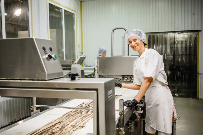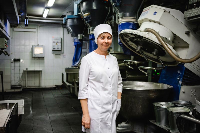 После интервью с генеральным директором мы посетили производство и познакомились с начальником производственной лаборатории Колесовой Ольгой Александровной, она рассказала о том, как шла модернизация завода в нулевых годах, показала производство, в том числе кондитерский цех.