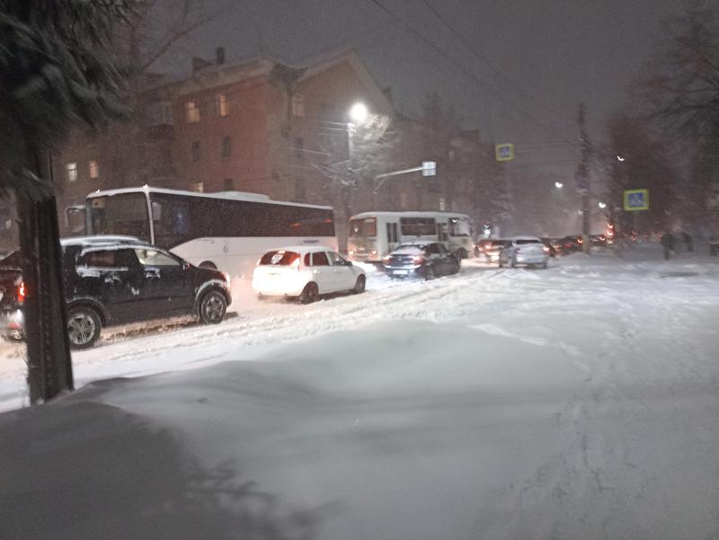 На дорогах Сызрани сохраняется сложная обстановка: горожане, закончив в 17 часов работу, до сих пор добираются домой. Об этом свидетельствуют сообщения в чатах автомобилистов. «Автобусы не могут подняться в гору, люди со стороны бывшего Пластика пешком вдоль дороги идут на Кашпир домой! - сообщают в сети сызранцы. - Даже Советская - вся в пробке! И скорая с мигалками в пробке на кольце стоит» Жители города сообщают, что на окраинах заметили единичную дорожную технику. В пробке встал весь город - включая экстренные службы. И жизненно необходимую в такие моменты скорую кто-то может не дождаться. Сызранцы пишут в соцсетях, задают вопросы о сроках расчистки города от снега, но пока официального комментария от администрации Сызрани не поступало. Не официального - тоже. В Сызрани, за ее долгую историю борьбы со снегом, бывало всякое - но такого дня, как сегодня, еще не было.