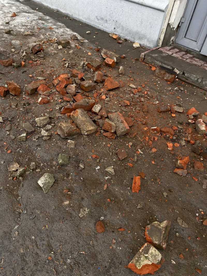 Утро добрым не бывает, если на голову летят кирпичи. Сегодня, 30 марта, с верхнего этажа дома №106 на улице Советской прямо на тротуар посыпались кирпичи. Красные булыжники, которые с грохотом падали вниз, до сих пор там и лежат. Очевидцы сообщают, что в момент обрушения внизу находилась женщина. Логично, ведь это тротуар центральной улицы города, по которому ежедневно проходят сотни, а может быть и тысячи человек - находиться здесь в момент очередного «прилета» мог кто угодно. - Мы с коллегами ходим по этому тротуару каждый день и постоянно смотрим вверх, чтобы на голову что-то не прилетело. Кирпичная кладка рушится не только с фасадной части здания. Обсыпается весь периметр, - сообщает очевидец корреспонденту портала «Маленькая Сызрань».