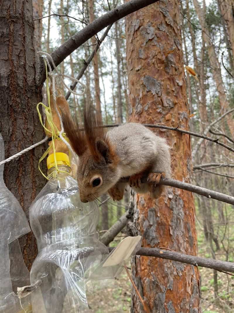 После наведения чистоты сотрудники банка покормили и сделали фото с обитателями зеленой зоны - белками и ежиком, которых встретили во время уборки.