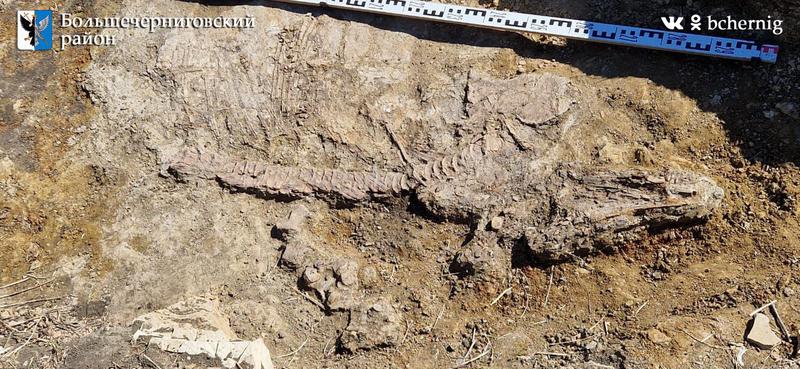Удивительную находку обнаружил в Самарской области тракторист Амир Зафиров. Мужчина случайно наткнулся на древние кости: в Большечерниговском районе тракторист обнаружил остатки плавающего динозавра - ихтиозавра. Изображения и фрагменты останков этих древних морских рептилий, внешне похожих на дельфина, но с огромной хищной пастью, можно, к слову, увидеть в сызранском Краеведческом музее. Именно этого хищника останки обнаружил в земле Амир Зафиров. 25 мая на место прибыли специалисты Самарского палеонтологического общества. Оказалось, что под тонким слоем земли многие миллионы лет скрывались остатки ихтиозавра. Сохранилась большая часть скелета и – что удивительно – его обед: между рёбер, в районе живота, сохранилась рыбья чешуя и фрагменты раковин моллюсков.
