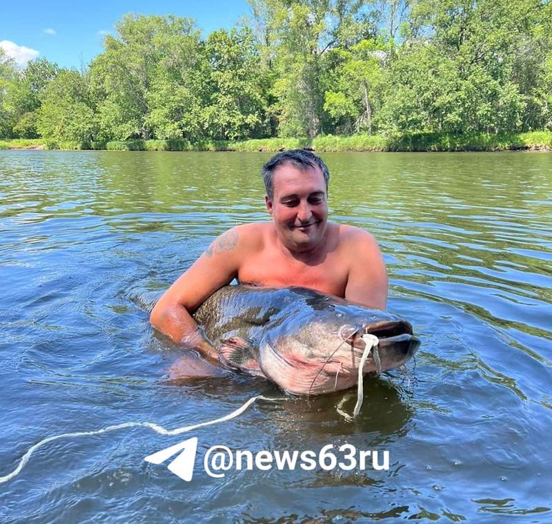В Самарской области рыбак поймал в Волге гигантскую усатую рыбу размером с крупного мужчину. 50-летний Александр Фурсов - рыбак со стажем. Впервые он взял удочки в руки в 12 лет. С тех пор это хобби захватило всё его свободное время. Четыре года назад мужчина увлекся ловлей сома. И довольно успешно. Один из последних трофеев — «усатый» экземпляр 187 сантиметров в длину. Рыба-богатырь клюнула на выползка (большого червя) у Васильевских островов. «Сом маленький. Всего 42 килограмма. Я ловил и покрупнее, - рассказал самарец. - Ловили его с лодки вместе с другом. Для него это первый трофейный сом. Он доволен. Рыбу разделили с ним пополам, угостили родных и друзей. Сделали шашлык. Вкусный». Как рассказал рыбак, они с товарищем сделали из головы рыбины уху, а