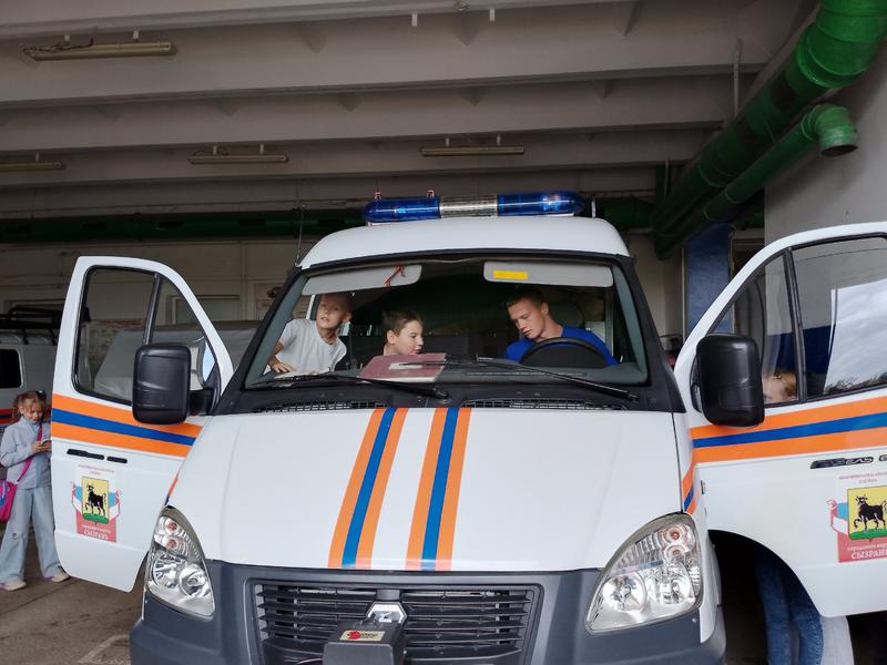 а затем ребятам позволили осмотреть спецтранспорт спасателей и даже