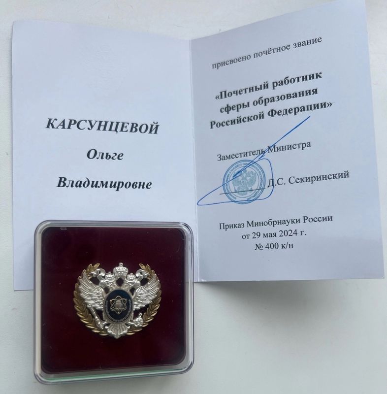 На заседании Ученого совета Самарского Политеха состоялась торжественная церемония награждения: Ольга Карсунцева, директор Сызранского филиала СамГТУ, доктор экономических наук была удостоена почетного звания «Почетный работник сферы образования Российской Федерации». Свою карьеру в Сызранском филиале Ольга Владимировна начала в 2004 году, и с тех пор она прошла путь от преподавателя до профессора кафедры «Экономика» и директора филиала. Ее научные достижения охватывают важнейшие аспекты развития машиностроительного комплекса, инновационной деятельности, достижения технологического суверенитета РФ.