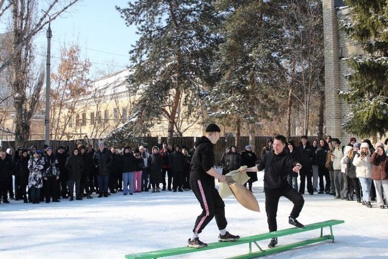 Во дворе Сызранского политехнического колледжа студенты с удовольствием хороводились, поднимали гирю, перетягивали на сторону своей команды канат и отбивались от «недруга» подушкой: молодежь отметила Масленицу с хороводами, играми и эстафетами, которые зарядили всех позитивом и хорошим настроением. Участники с удовольствием принимали участие в традиционных играх: «Перетягивание каната», «Бой подушками», «Гиря», «Дуй и неси», «Катание на санях» и, конечно, хороводах вокруг яркого масленичного чучела - «вокруг чучела», - как рассказали в колледже. Директор колледжа организовала для участников масленичный стол с блинами, пирогами, а также - подарки всем участникам праздника. Праздник получился и веселым, и душевным, он был организован с любовью и фантазией, признали все участники.