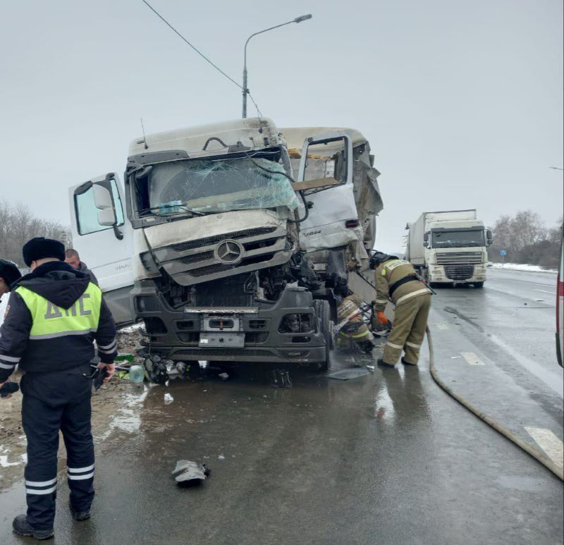 В понедельник, 3 марта, на трассе М-5 возле Сызрани произошло столкновение 2 грузовых автомобилей, DAF и Mercedes Benz. Судя по фото, фуры везли строительный материал. К сожалению, есть пострадавший. Водителя Mercedes Benz пожарные-спасатели передали медработникам для госпитализации. На месте также работали сотрудники Госавтоинспекции. Информацию с места событий сообщил Центр по делам ГО, ПБ и ЧС. Пожарные-спасатели ПСО 47 противопожарной службы Самарской области также проводили аварийно-спасательные работы: сбор информации, отключение АКБ, деблокирование пострадавшего, смыв ГСМ с дорожного полотна.