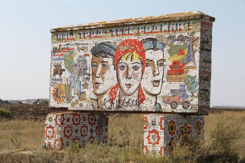 Когда-то аналогичное, наполненное смыслом панно, стояло при въезде в Кулатку Ульяновской области (с обозначением Старая Кулатка). Когда оно начало осыпаться, то местные «умельцы» ничего лучше не придумали, как просто его снести.
