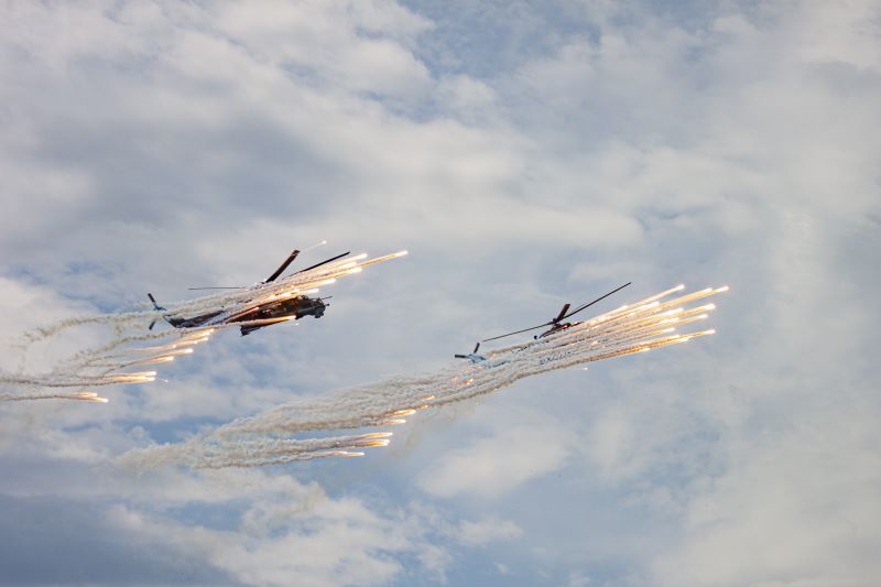 Пилотаж вертолетов МИ-2,МИ-8МТ, МИ-24,МИ-28НМ «Ночной охотник», КА-52 «Аллигатор» и учебно-боевых самолетов Як-130 пилотажной группы «Крылья Тавриды» подарил незабываемые эмоции пришедшим на праздник. Это было не «авиашоу», о котором сегодня так часто можно слышать, а пролёт звеньев вертолётов армейской авиации - мощи и опоры России! Эти и другие фотографии события от портала «маленькая Сызрань» можно скачать в хорошем качестве в альбоме на нашей странице ВКонтакте - по ссылке.
