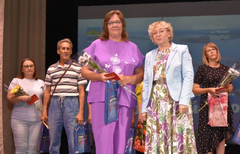 В среду, 30 июля, в Доме культуры «Железнодорожник» состоялось торжественное мероприятие, посвящённое 69-ой годовщине со дня образования городского округа Октябрьск и предстоящему Дню железнодорожника. Горожан поздравила мэр Александра Гожая. Центральным событием программы стало чествование выдающихся жителей города за успехи в сферах производства и безопасности, культуры, образования, молодёжной и социальной политики, общественной деятельности. Александра Викторовна, которая сегодня, 31 июля, празднует день рождения, наградила активных работников сферы ЖКХ памятными знаками «За служение людям», учреждёнными по инициативе Губернатора Самарской области.