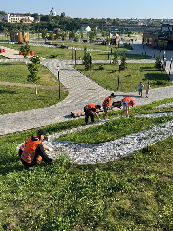 Ольга Николаевна Пересунченко, мастер МКУ «Благоустройство», руководит подростками, решившими подзаработать летом на благоустройстве территорий города. Сумма заработка небольшая, но, как отметили на предприятии, главная цель летнего трудоустройства подростков 14-18 лет - приобщение их к труду, получение первых профессиональных навыков и профилактика правонарушений в подростковой среде. На фото - ребята пропалывают сорняки на Кремлевской набережной. Также они поливают клумбы, ухаживая за растениями.