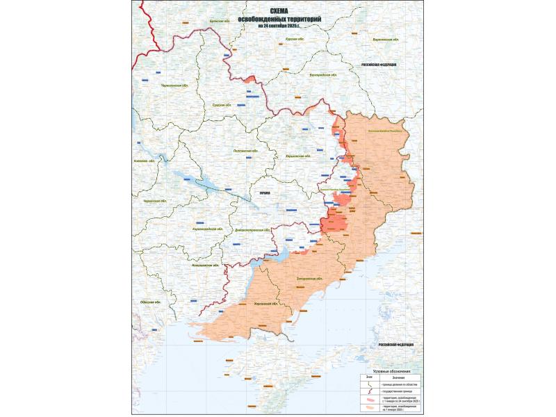 Почти 5 тысяч кв. км освобождены российскими военными с 1 января по 25 сентября текущего года в ходе специальной военной операции. Каждый км земли на карте, опубликованной министерством обороны РФ, полит кровью бойцов. В Минобороны озвучили данные - 205 отбитых населенных пунктов, более 4 714 квадратных километров освобожденных земель. Из них: в Донецкой Народной Республике свыше 3 308 кв.км, в Луганской Народной Республике более 205 кв.км, в Харьковской области свыше 542 кв.км, в Запорожской области более 261 кв.км, в Сумской области свыше 223 кв.км, в Днепропетровской области более 175 кв.км.