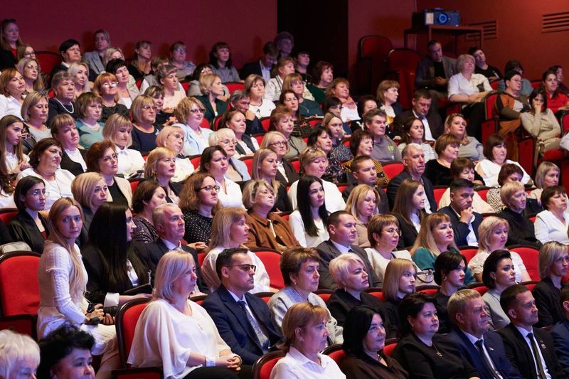 Много теплых слов прозвучало в адрес ветеранов педагогического труда, которым зал аплодировал стоя.