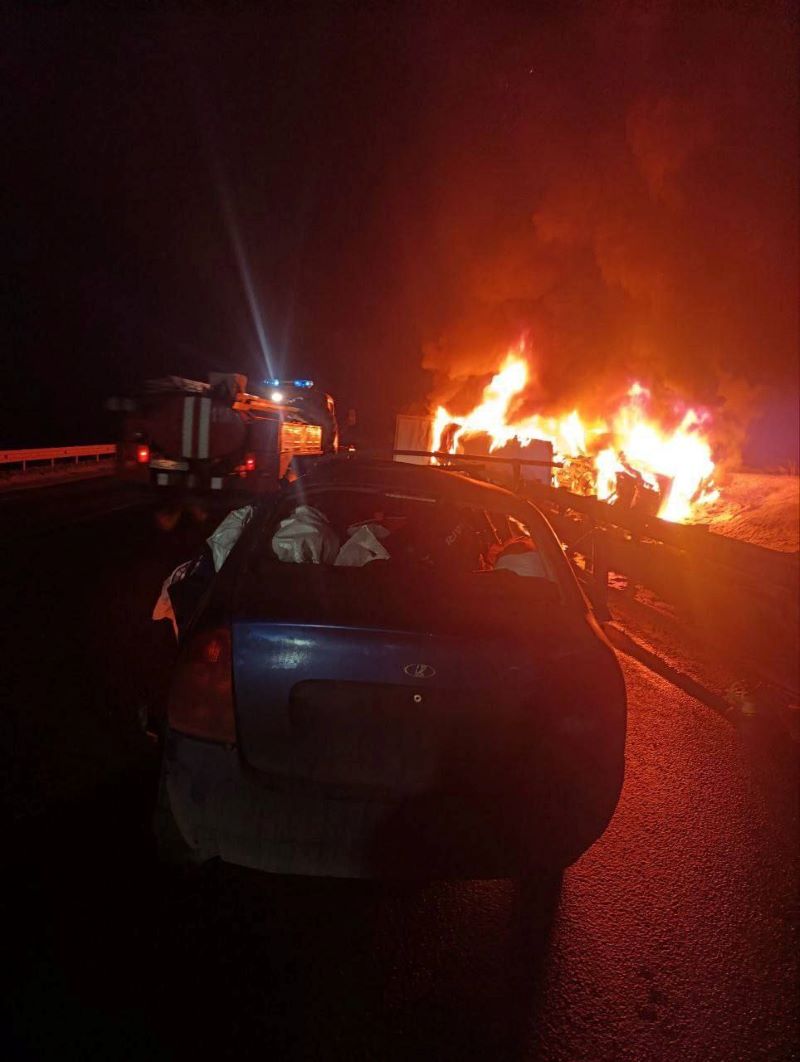 Сотрудниками полиции проводится проверка по факту ДТП в Тереньгульском районе Ульяновской области. По предварительным данным 3 декабря в 23:30 часа на 232 километре автодороги «подъезд к г. Ульяновску от M-5 Урал» автомобиль «Лада Калина» под управлением водителя, мужчины 1998 года рождения, совершил выезд на полосу встречного движения и совершил столкновение с фурой «Даф» в составе полуприцепа под управлением водителя, мужчины 1992 года рождения. После столкновения большегруз совершил съезд в кювет с последующим возгоранием.