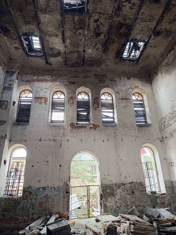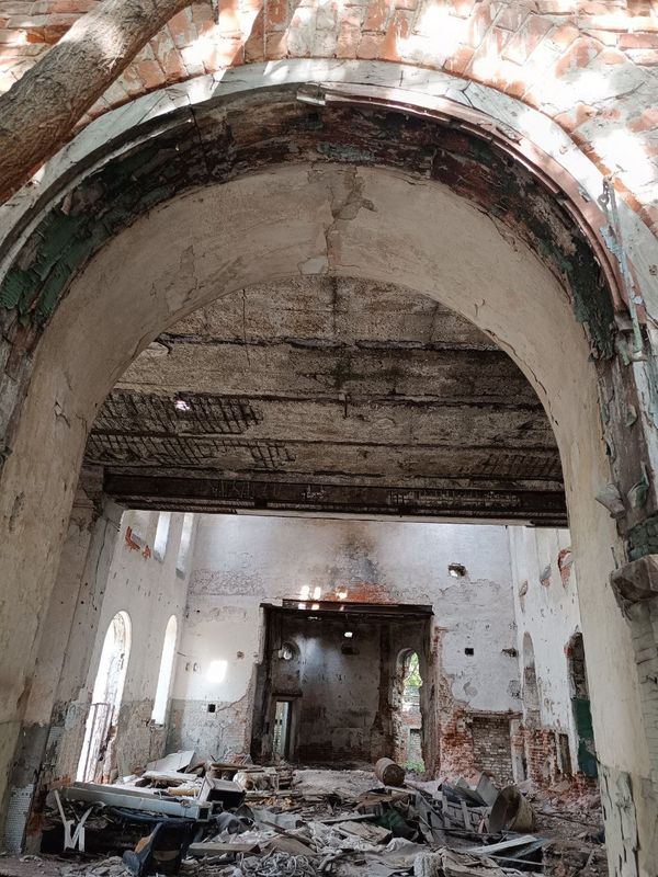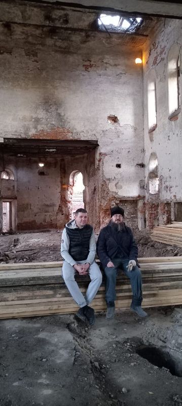 рассказал отец Виталий, внутри полуразрушенного Никольского храма уже