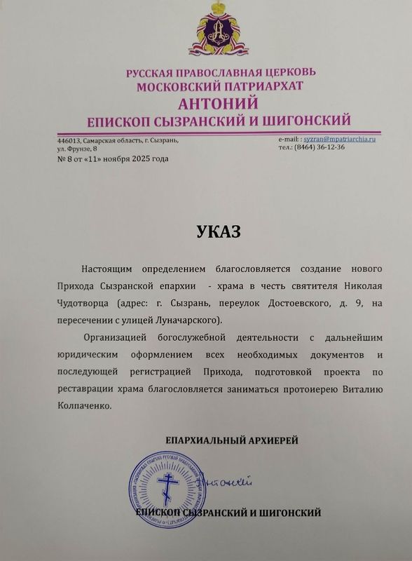 В Сызрани приступили к восстановлению единоверческого Никольского храма. Многим знакомо перенесшее пожар и разрушения здание старинного храма в переулке Достоевского, 9, рядом с Пенсионным фондом «Клиентская служба СФР». Меньше месяца прошло с момента принятия важного решения, принятого в Сызранской епархии: создать новый приход в храме в честь святителя Николая Чудотворца. Меньше месяца прошло - а в декабре здесь пройдет первая торжественная служба. Никольская единоверческая церковь является памятником архитектуры регионального значения и известна своей непростой историей.