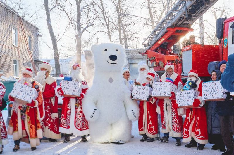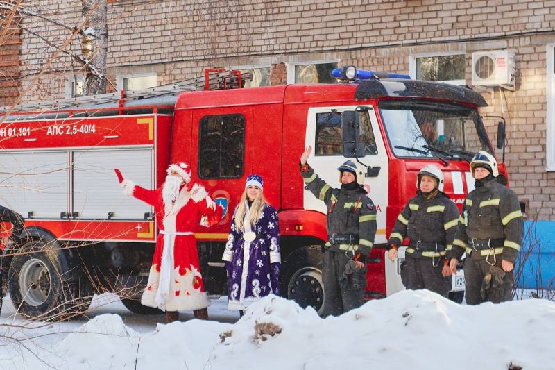 В преддверии новогодних праздников пожарные и спасатели ГУ МЧС России Самарской области поздравили юных пациентов Самарской областной детской клинической больницы им. Н.Н. Ивановой. В костюмах Дедов Морозов они спустились на страховочных тросах с крыши медучреждения, заглянув в каждое окно. Внизу детей приветствовали Снегурочка и Белый Медведь. Воодушевленные визитом сказочных героев, ребята получили подарки.