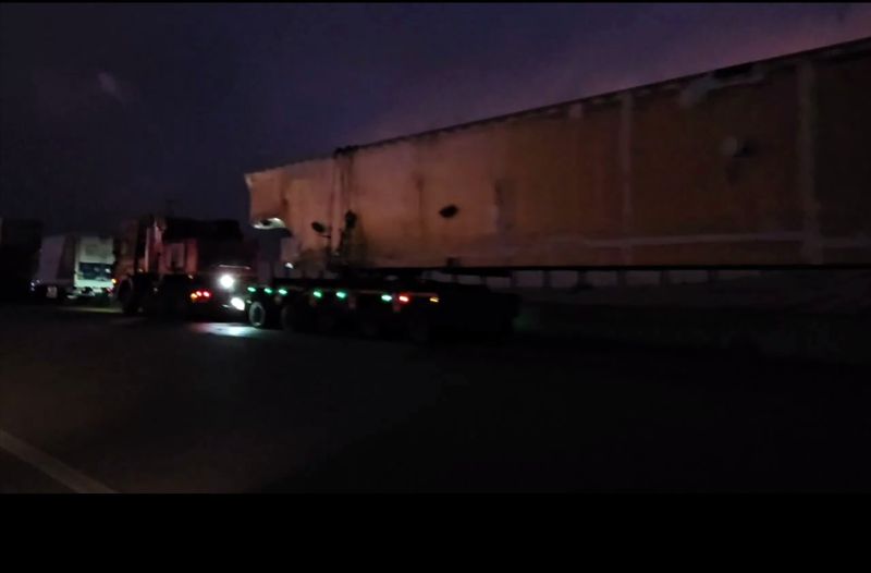 большегрузы, они мчат по трассе, перевозя самый габаритный элемент