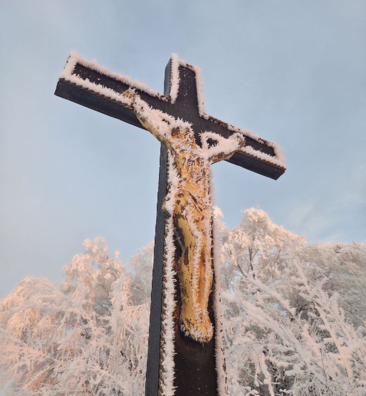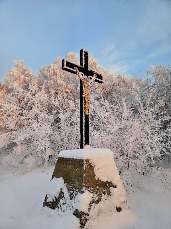 Впечатляющие кадры сделал житель поселка Майоровский Сызранского района Константин Шакута. Известный пчеловод, призер Всероссийского конкурса «Лучший мед России» не может оставаться равнодушным к красоте окружающего мира. Ни один художник не в состоянии так преобразить какой-либо предмет или растение, как это сделала бы Природа - так и случилось в январский день, когда на поклонном кресте Константин Шакута увидел шикарное украшение из изморози. Как рассказал корреспонденту портала «маленькая Сызрань» фотограф, он сделал снимки на въезде в Октябрьск. Окаменевшее дыхание зимы покрыло деревья, а также крест и изображенного на нем Христа почти новогодней «мишурой» из кристаллов льда. Недолговечное украшение исчезло, как только сменилась погода.
