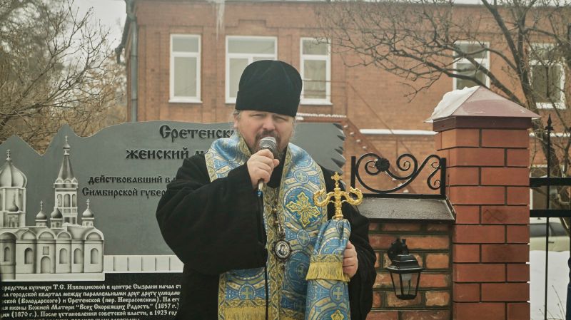 В пятницу, 13 февраля, в Сызрани состоялось торжественное открытие памятного знака Сретенскому женскому монастырю, более 150 лет назад находился на улице Большой (ныне - Советская, 112). В 1856 году в центре Сызрани на средства купчихи Татьяны Степановны Извозчиковой начал строиться Сретенский женский монастырь. На его территории располагались три храма: деревянный - во имя иконы Божией Матери всех Скорбящих Радости, и каменные - Рождества Пресвятой Богородицы и Сретения Господня. Монастырь, полностью разрушенный в годы советской власти, занимал важное место в духовной жизни Сызрани.
