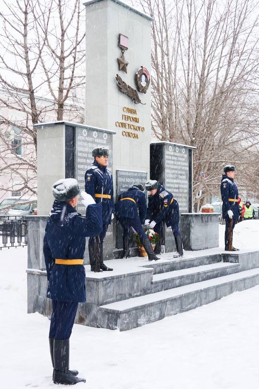 Сегодня в Сквере Славы на улице Советской горожане почтили память защитников Отечества: провели митинг и возложили цветы к монументу. В разные годы – 1995, 2001 и 2025 – здесь были высечены имена Героев Советского Союза и России. Сегодняшний день также можно назвать историческим: на плитах монумента появились новые фамилии. Это имена наших современников, участников специальной военной операции: Тарасова Алексея Валерьевича, Волчкова Алексея Сергеевича и Кудрякова Азиза Махсутовича. Военнослужащие героически погибли при выполнении боевых задач. В канун Дня защитника Отечества и годовщины начала СВО это событие приобретает особый смысл.