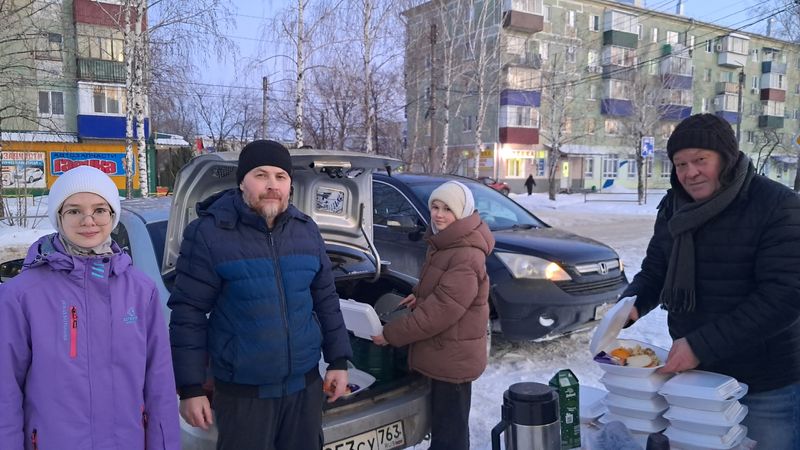 Четыре года назад добровольцы решили не только раздавать контейнеры с угощением пришедшим горожанам, но и развозить их по домам к тем, кто не в силах прийти на площадку у ТЦ «Волжанка». Обычно участники акции готовят около 100 контейнеров, и часть их развозят по домам к тем, кто не в силах дойти до «Волжанки».