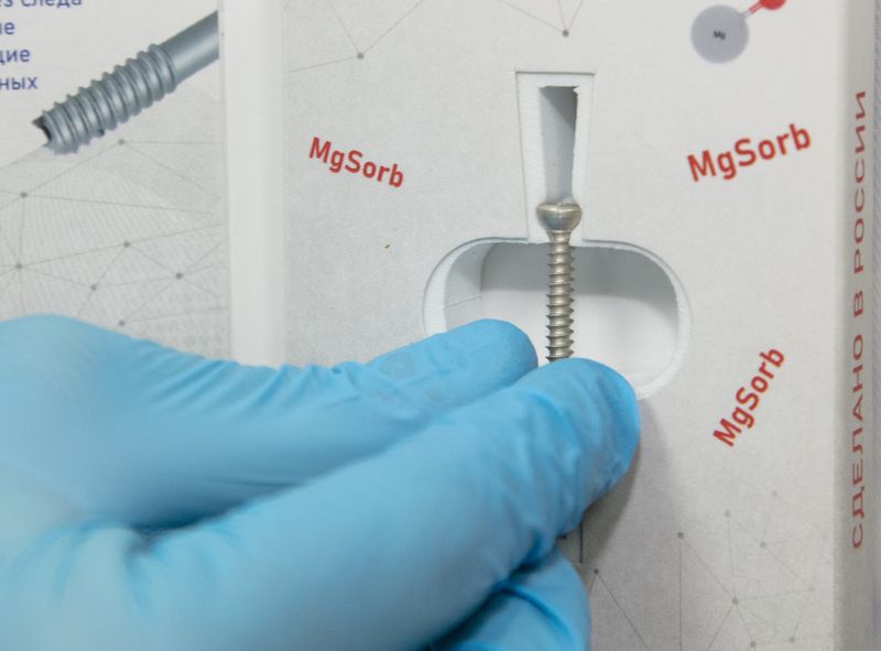 винтов из магниевых сплавов - всего 60 типоразмеров. Эти имплантаты растворяются в организме пациента, способствуя