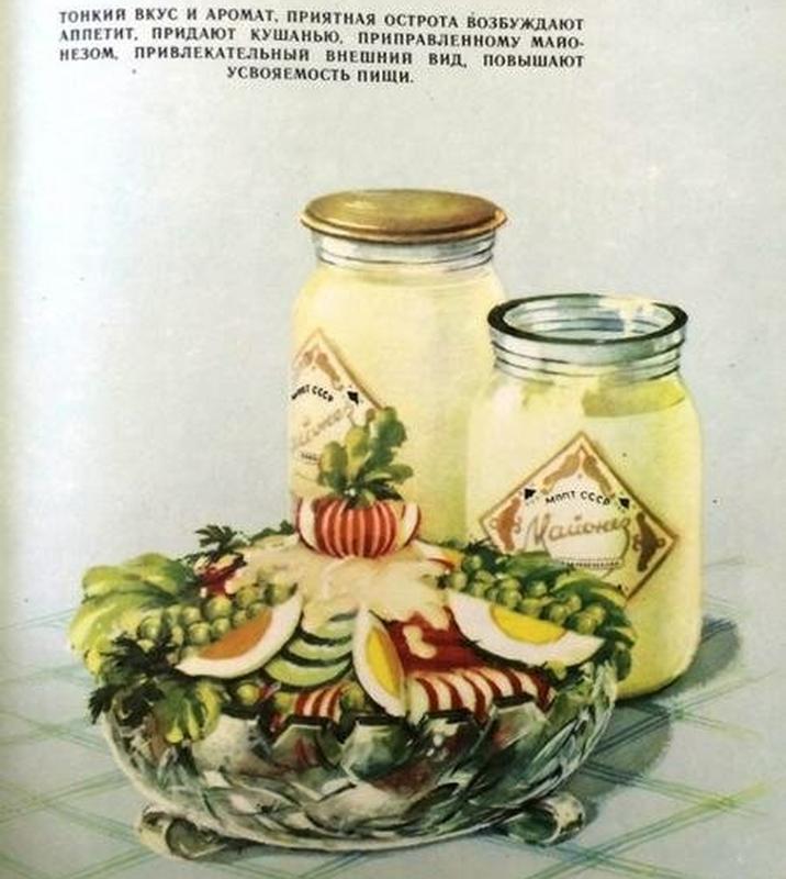 Майонез «Провансаль»Майонез «Провансаль» изготавливался также по американской технологии, которую раскрыли в Чикаго. Майонез считался полезным и качественным продуктом. Сейчас, кстати, принято его демонизировать, но на самом деле в составе майонеза обычный яичный желток, растительное масло, горчица, уксус или лимонный сок, соль и сахар.
