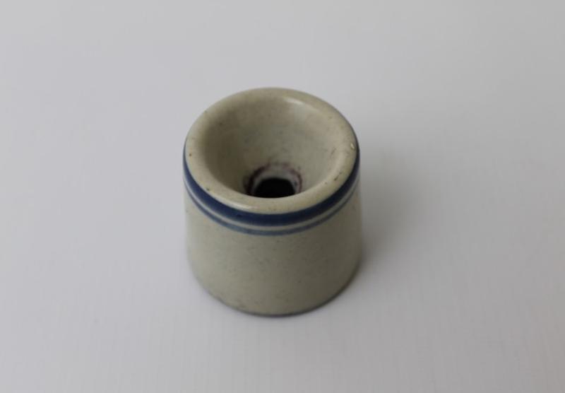 Большинство школьных чернильниц были стеклянными, но в фондах нашего музея имеется также чернильница из фаянса, покрытая сероватой глазурью. Вверху по окружности нанесены две синие полосы. Принята «непроливайка» в 1978 году от Скорлыгина С.В.