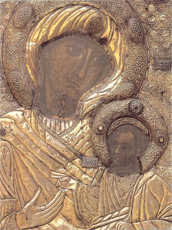 Иверская икона (которая сейчас хранится на Афоне) в IX веке находилась у одной благочестивой вдовы, жившей близ города Никеи. При императоре Феофиле (829–842) иконоборцы, уничтожавшие святые иконы, пришли в дом этой христианки, и один воин копьем ударил по образу Богородицы. Тотчас из пораженного места потекла кровь. Вдова, боясь уничтожения святыни, пообещала императорским воинам деньги и просила их до утра не трогать икону.