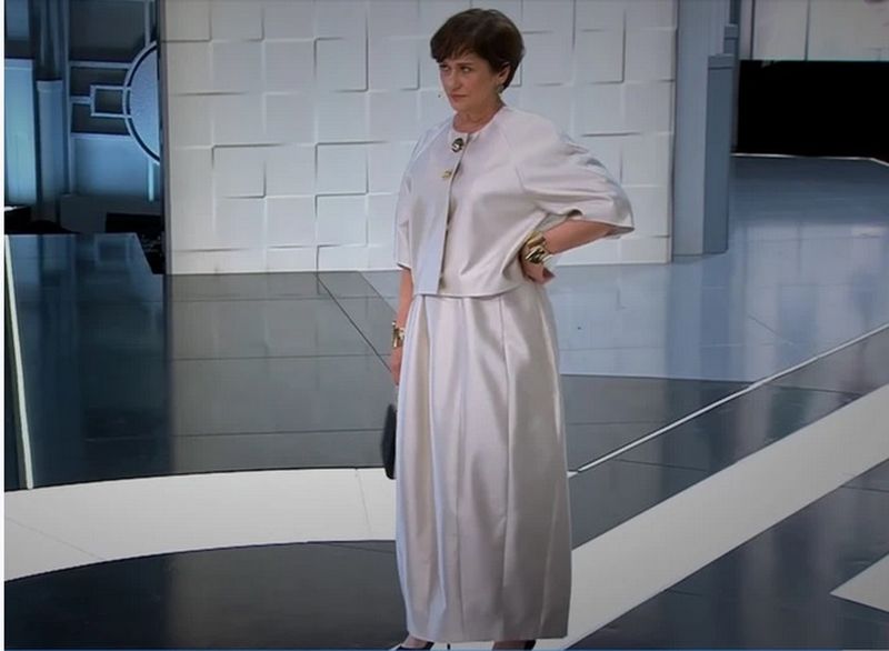 Завершил тройку образов от стилистов жемчужного цвета костюм с юбкой. Он стал самым нежным и женственным. От прежней Людмилы в нем ничего не осталось. Перед зрителями предстала уверенная в себе женщина, готовая начать новую, счастливую жизнь.