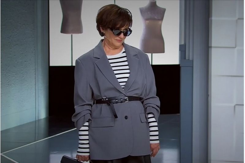 Во втором образе - черные брюки, кофточка в полоску и серый пиджак с пояском на талии - самарчанка чувствовала себя уже более уверенно. Походка заметно изменилась - стала вальяжной. Появилось кокетство. На что Александр Рогов сказал, что она прошлась по студии, как настоящая модель по подиуму. А Настасья Самбурская отметила: «Вы как минимум похожи на хозяйку частного борта».