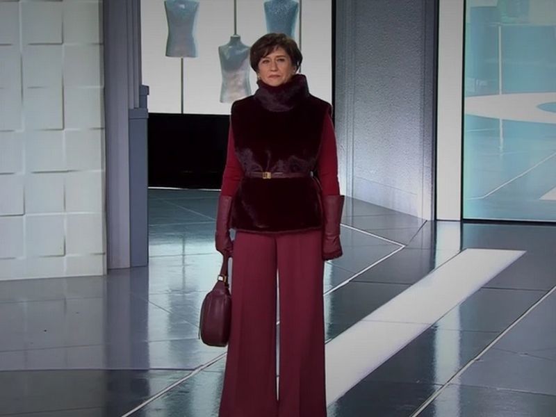 Стилисты подобрали для Людмилы бордовый костюм с меховой жилеткой, который превратил ее в актрису французского кино. У родственников пропал дар речи, а модный судья Александр Рогов сказал: «Вот это вау! Просто шик!». Не поверила отражению в зеркале и сама Людмила. От переполнявших ее эмоций она даже расплакалась.